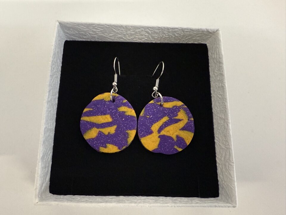 Handgemaakte oorbellen klei | Geel Paars variant 2