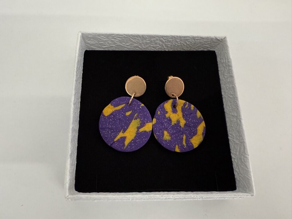 Handgemaakte oorbellen klei | Geel Paars