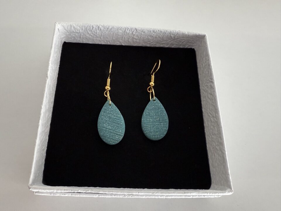 Handgemaakte oorbellen klei Turquoise druppel vorm