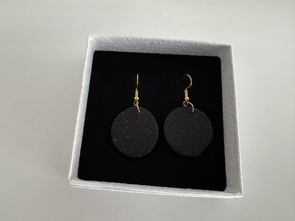 Handgemaakte oorbellen klei zwarte met goud Rond