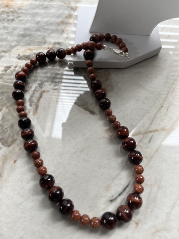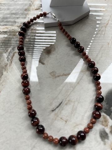 Het betreft 1 ketting van edelsteen 28 cm gemaakt uit rode tijgeroog en goudsteen kralen, Het is mogelijk om een bijpassende armband te laten maken. Doordat edelsteen een natuurlijk product is kan het geleverde product afwijken van de afbeelding. Neem bij twijfel altijd even contact op voordat de bestelling wordt geplaatst.