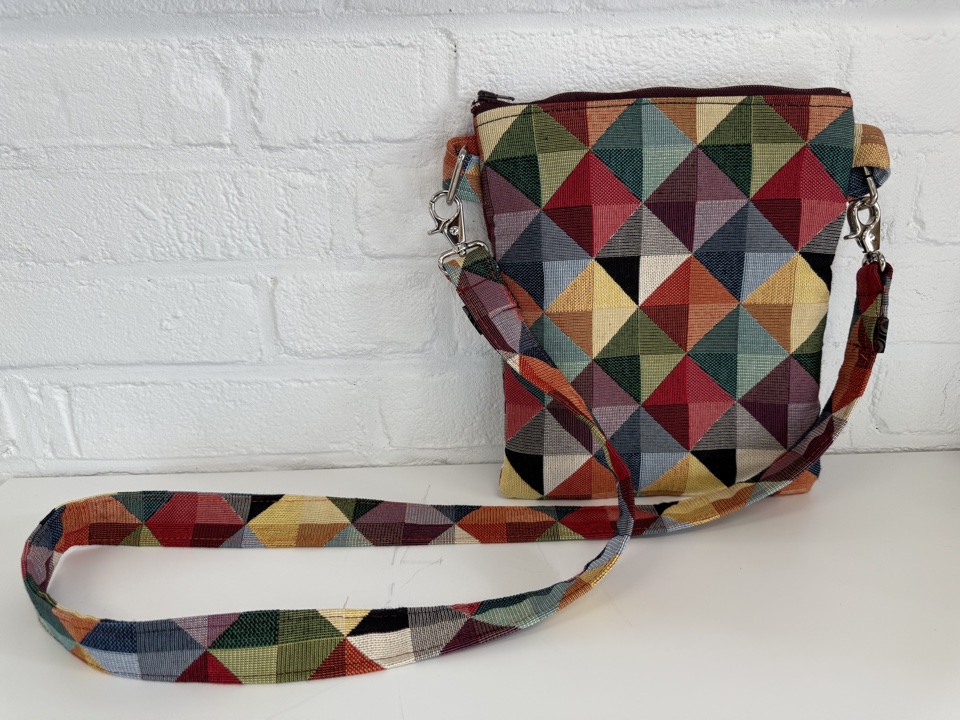 De tas is voorzien van een afneembaar hengels en bovenaan afsluitbaar met een rits.