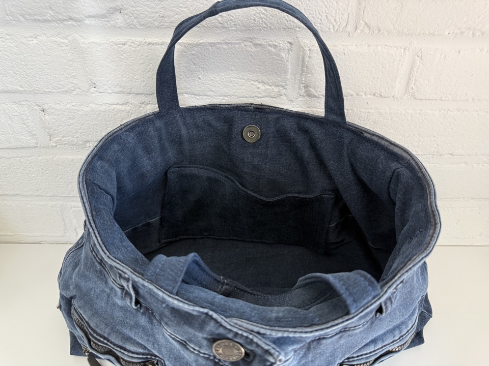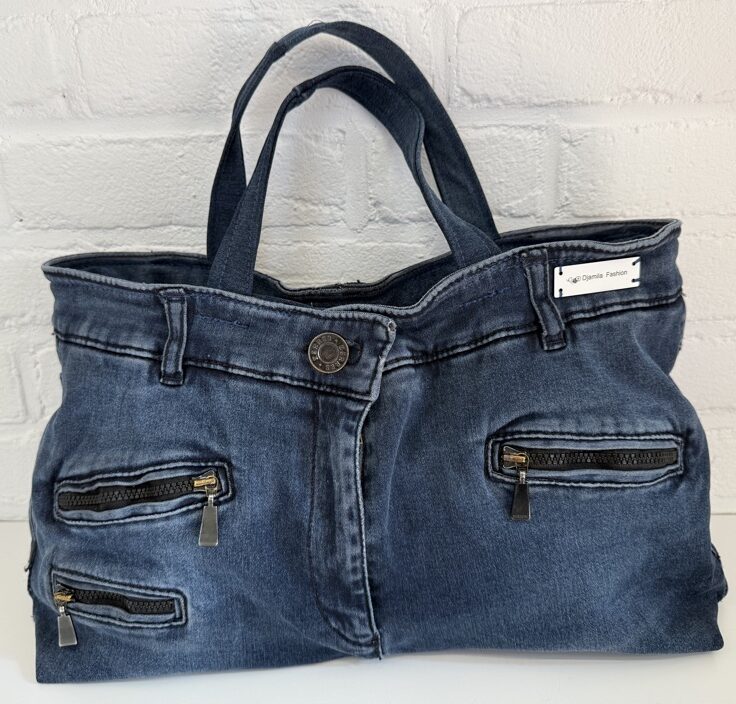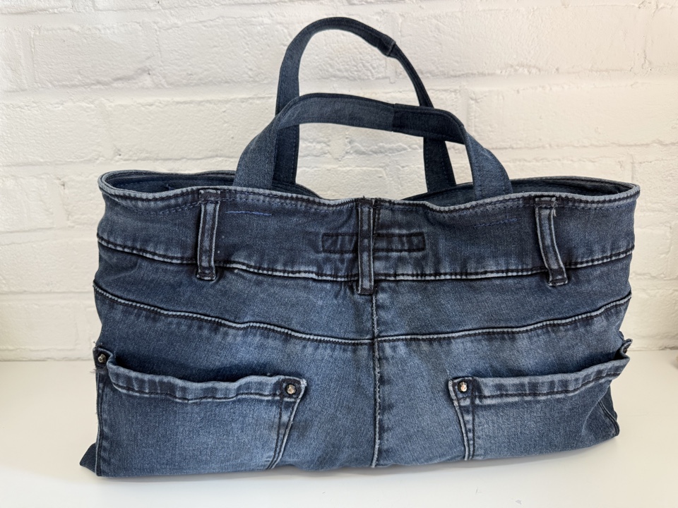 Handgemaakte Upcycled Denim Handtas – Uniek & Duurzaam Afmetingen: ca. 37cm breed x 25 cm hoog
